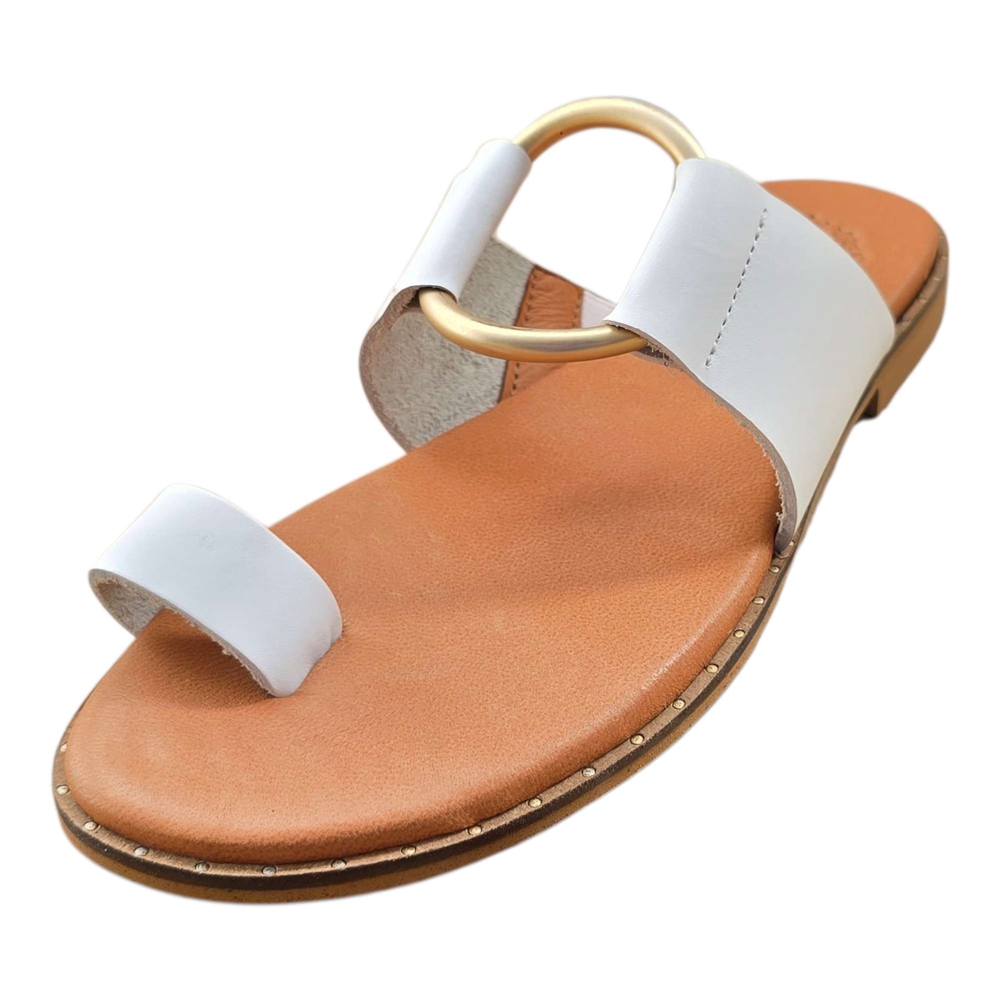 SANDALIA PLANA CIRCULO EMPEINE Y DEDO BLANCO BLANCO